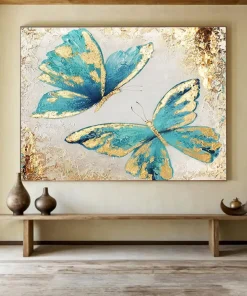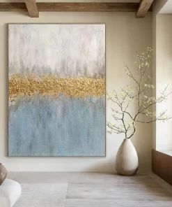 Blue & Gold Abstract Striped Art, Ideal for Serene Bedroom & Sophisticated Office clDCpxEa8906