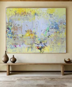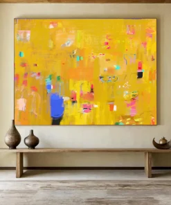 Bright Yellow Abstract Painting for Cheerful Kitchen & Creative Studio Break Area Tau159
