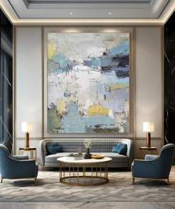 Be the first to review ““Abstract Landscape Hues” ,Muted blues, grays, yellows, and hints of red, with a fragmented, abstract composition. liH908” Cancel reply