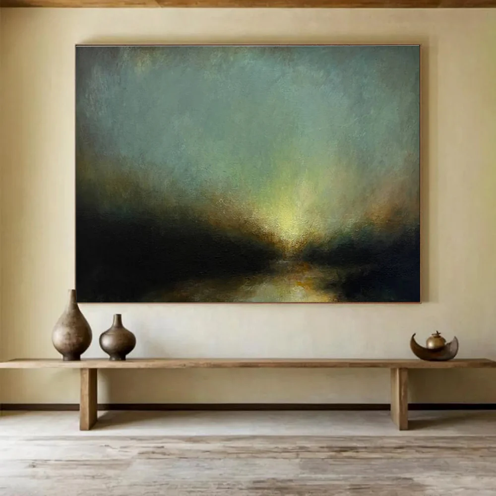 Inspired by mysterious landscapes, the artist used soft greens and yellows to create a glowing scene. They aimed to evoke a sense of wonder. Ideal for a study or a creative space, enhancing imagination. As they painted, they focused on the glow’s details. It’s a celebration of mystic landscapes, inviting viewers to explore.
