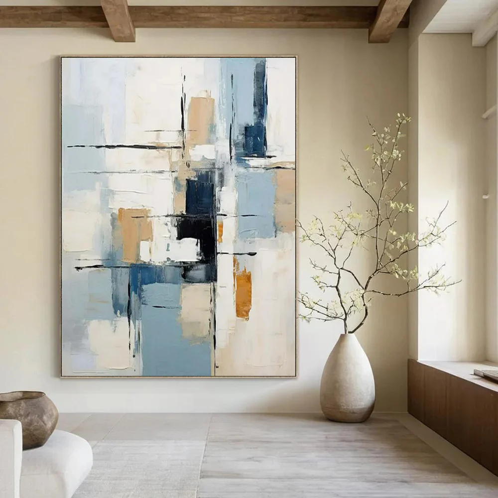 This geometric abstract acrylic painting in soft tones is designed for calm and peaceful spaces. The artist was thinking about the serenity needed in a nursery and a yoga room. They used gentle geometric shapes and soft colors to create a soothing visual experience. The 创作 process involved carefully planning the shapes to bring a sense of order and tranquility, making it a perfect addition to these relaxing spaces. Packaging: Each artwork is professionally rolled and secured in a durable hard-shell tube for safe transit with a 2–3 inch white border around the painting for easy stretching or framing at your local shop. Delivery Timeline: Expect your painting within 7–12 business days including 3–5 days for handcrafting by our artists and 5–7 days for worldwide delivery via UPS or FedEx with a tracking number provided immediately upon shipping.