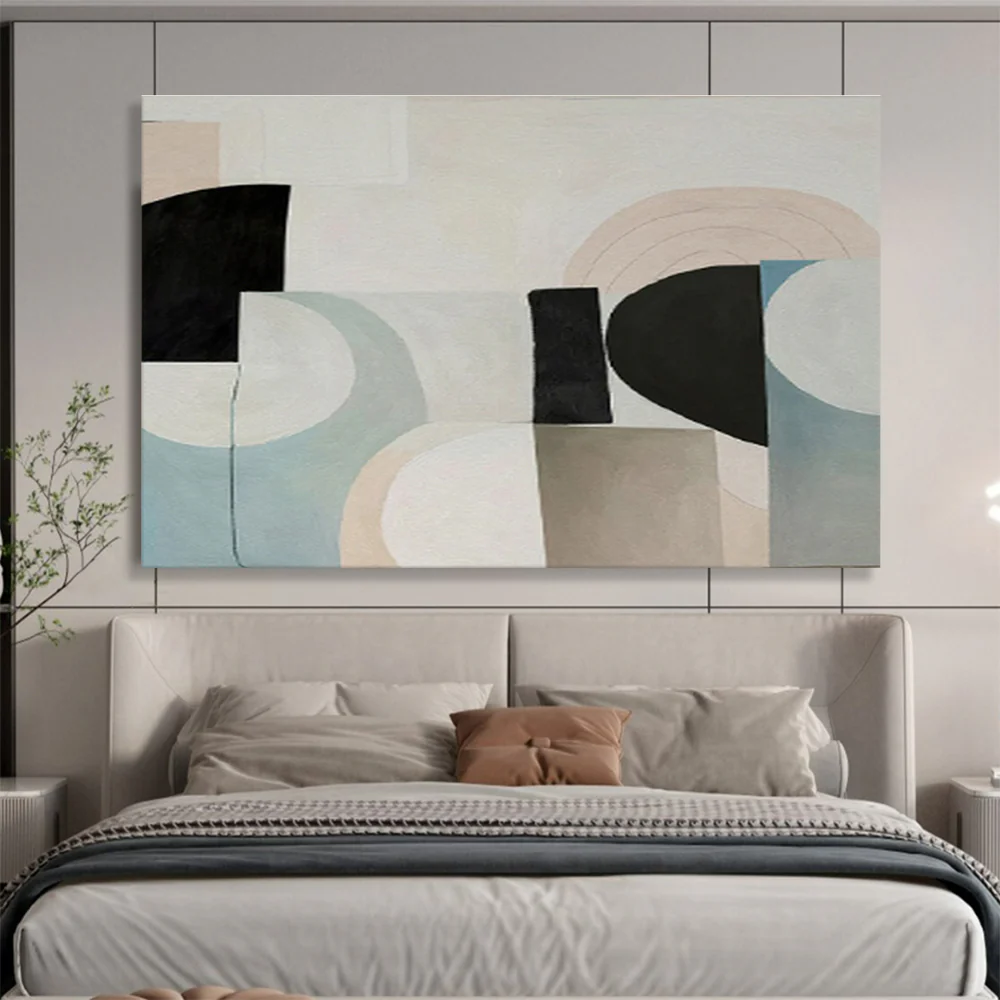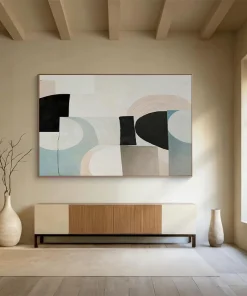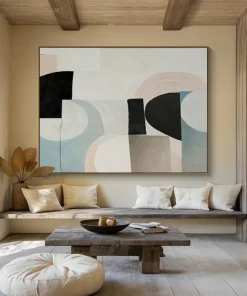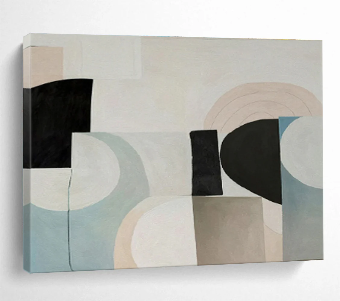 On a spring day in a pastel – filled art supply shop, the artist was drawn to soft – hued paints. By experimenting with circles and rectangles, they constructed this balanced composition. It suits a quaint coffee shop’s seating area, adding a touch of gentle charm. It’s also a great fit for a baby girl’s nursery, where its soft colors can create a dreamy space. The artist’s concept was to blend playfulness and order. They spent hours adjusting shapes and colors to achieve that perfect, calming balance, like a harmonious lullaby in visual form.
