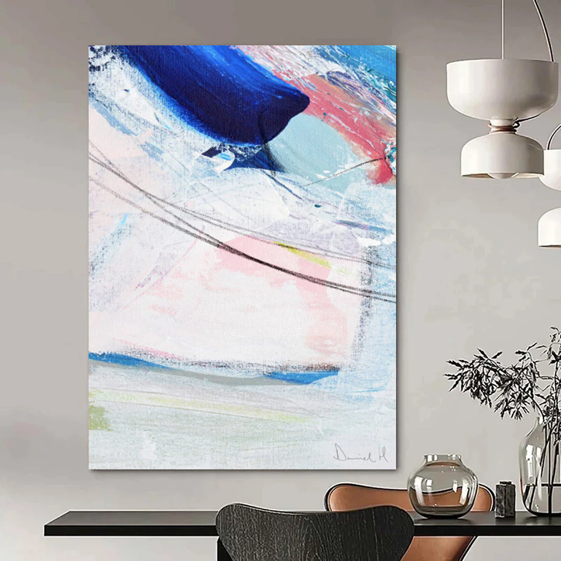 Drawn from themes of harmony and fluidity, the artist blends pastel tones and adds linear accents to create a harmonious, flowing abstract piece. The smooth transitions and lines evoke a sense of movement and balance, like a gentle stream. Perfect for a living room, bedroom, or relaxation area, bringing a sense of harmonious flow and calming energy to the space.