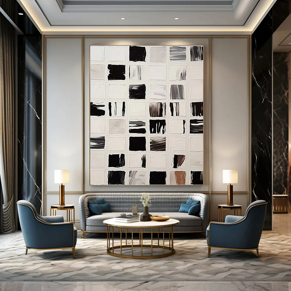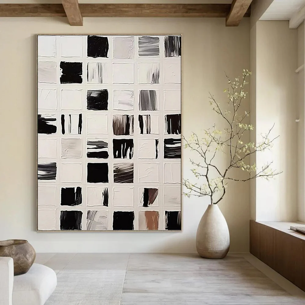 Be the first to review ““Black and White Square Abstraction” – Black, White Abstract Art on Canvas epW7077” Cancel reply