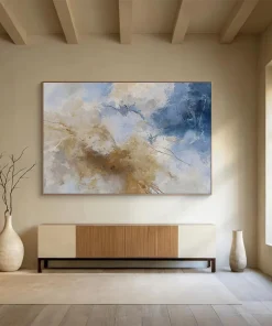 On a quiet morning, the artist looked at the sky—soft blues and creamy beiges merging. They wanted to capture that simplicity, that lack of noise. So they used large, sweeping brushstrokes, blending blues and beiges to create a calm, soothing canvas. It’s about finding peace in minimalism, of letting your mind rest. Perfect for a minimalist bedroom to keep the space serene or a calm office to reduce stress. This painting is the artist’s reminder to slow down, to appreciate the simple, beautiful moments in life, like a quiet morning sky. Packaging: Each artwork is professionally rolled and secured in a durable hard-shell tube for safe transit with a 2–3 inch white border around the painting for easy stretching or framing at your local shop. Delivery Timeline: Expect your painting within 7–12 business days including 3–5 days for handcrafting by our artists and 5–7 days for worldwide delivery via UPS or FedEx with a tracking number provided immediately upon shipping.