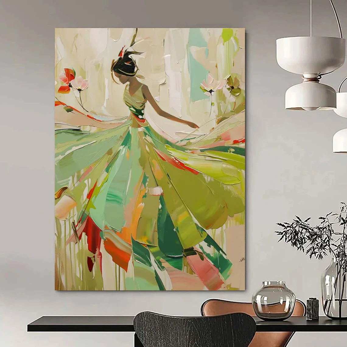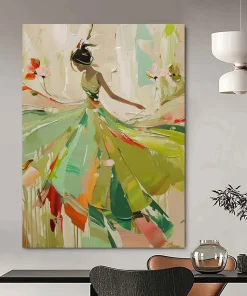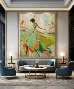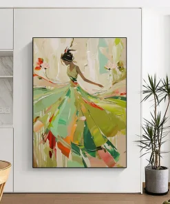 Be the first to review ““Elegant Dancer in Green” – Abstract Figure Oil Painting with Flowing Colors Ddr684” Cancel reply