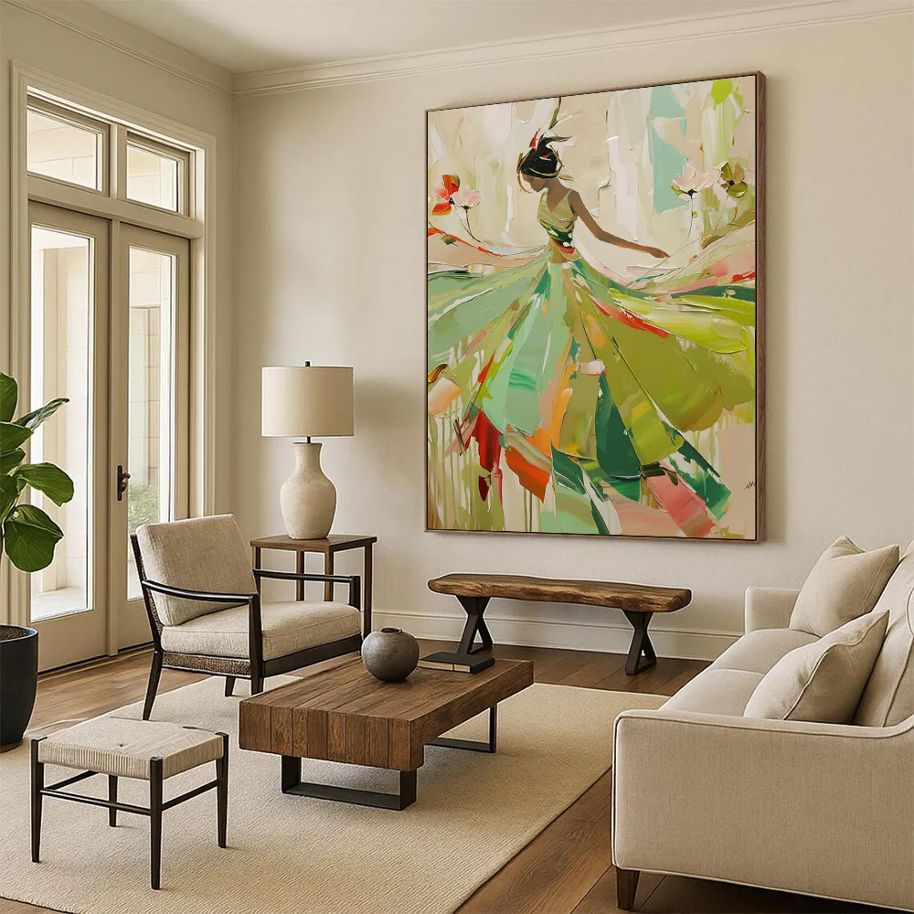 Drawn from the grace of a ballet dancer in motion, the artist used flowing greens and pops of other hues to capture the fluidity of the dress and the dancer’s movement. The bold, expressive brushstrokes are reminiscent of Henri Matisse’s figurative works. Ideal for a sophisticated living room or an art – loving dance studio. This painting doesn’t just show a dancer; it brings the rhythm and beauty of dance into your space, making it feel alive with artistic movement.