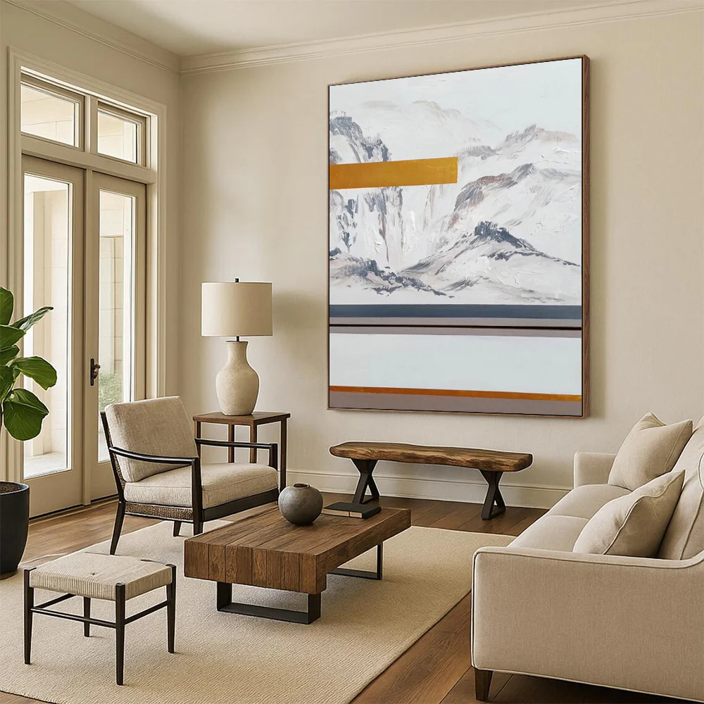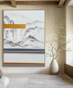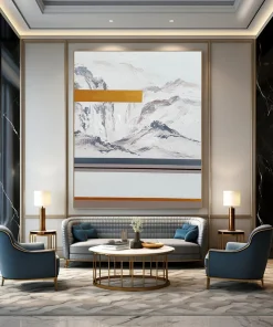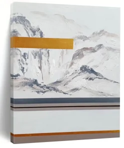 Drawn from misty mountain hikes, the artist used soft grays and whites to capture the mountains’ mystery, adding gold for a touch of celestial wonder. Channeling Hiroshi Sugimoto’s minimalist serenity, it balances tradition and modernity. Perfect for Asian – inspired living rooms craving elegance or meditation spaces needing a calm focal point. Let these peaks lift your spirit—own a piece of quiet grandeur.