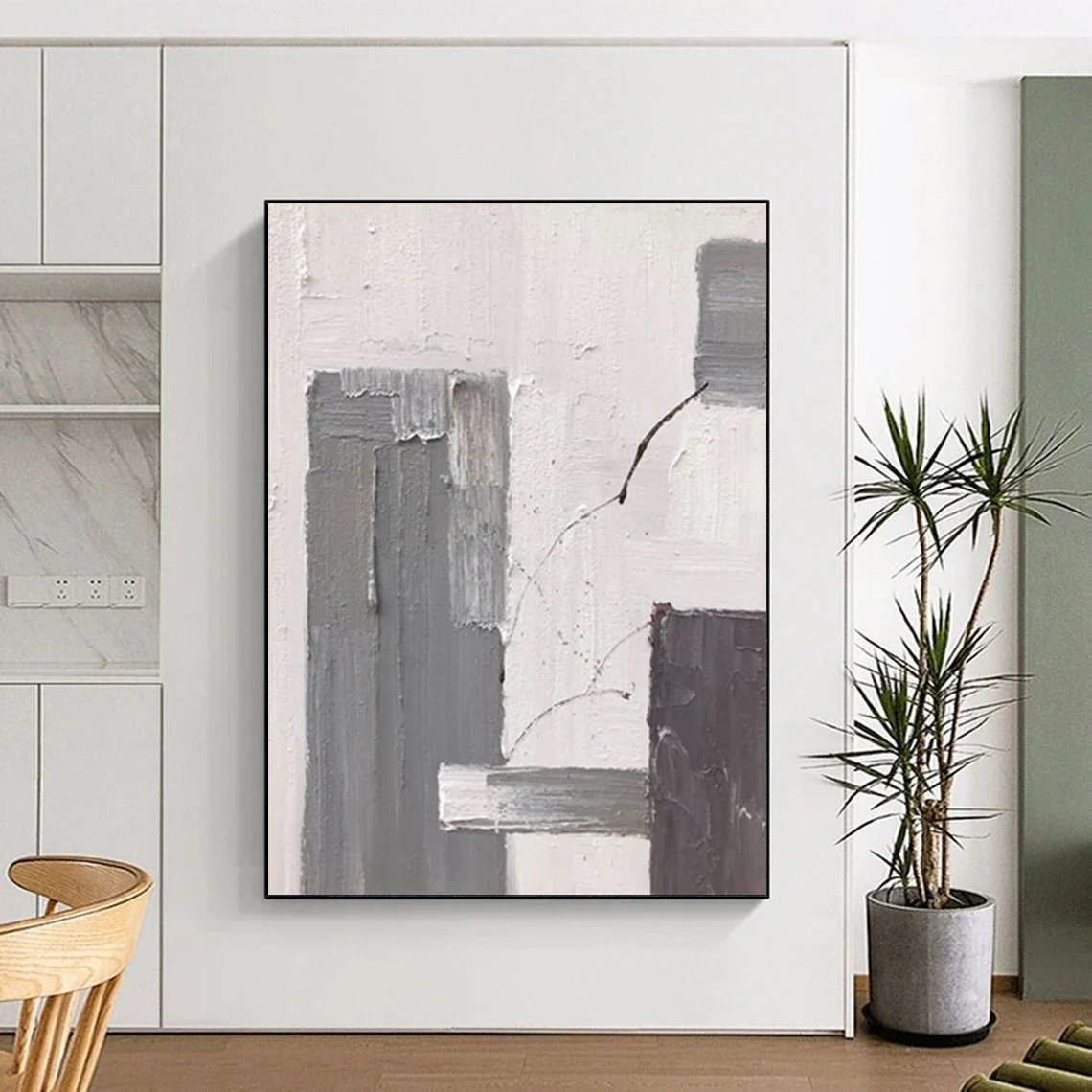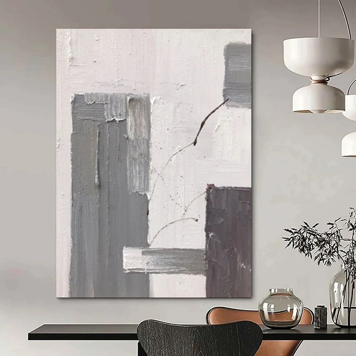Inspired by the simplicity of a Zen garden’s rock formations, the artist used minimal elements for balance. Echoing the tranquil minimalism of Agnes Martin, it suits a meditation room or minimalist hallway, promoting a sense of calm and order.