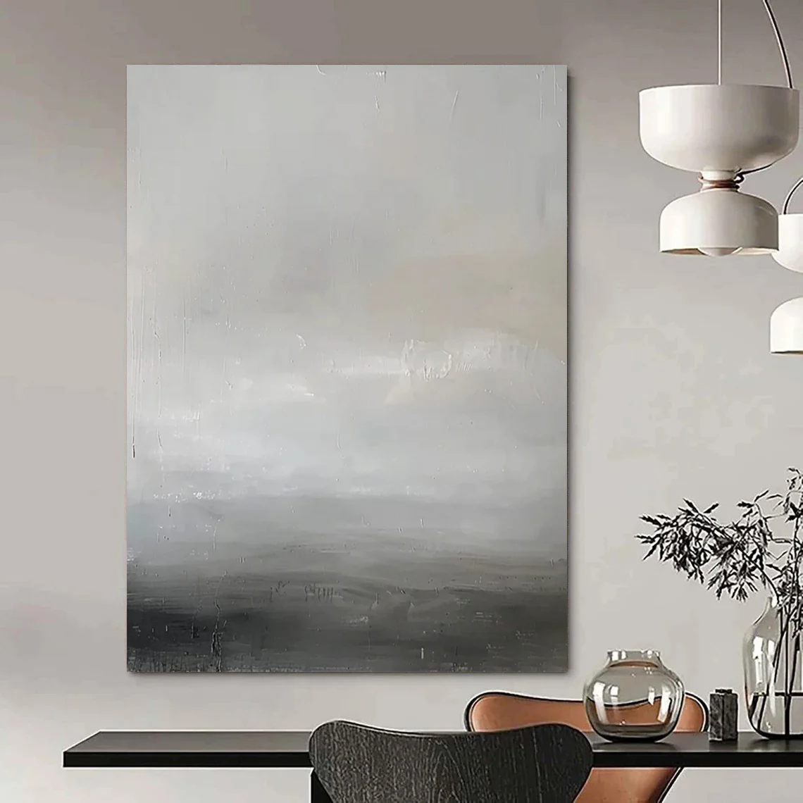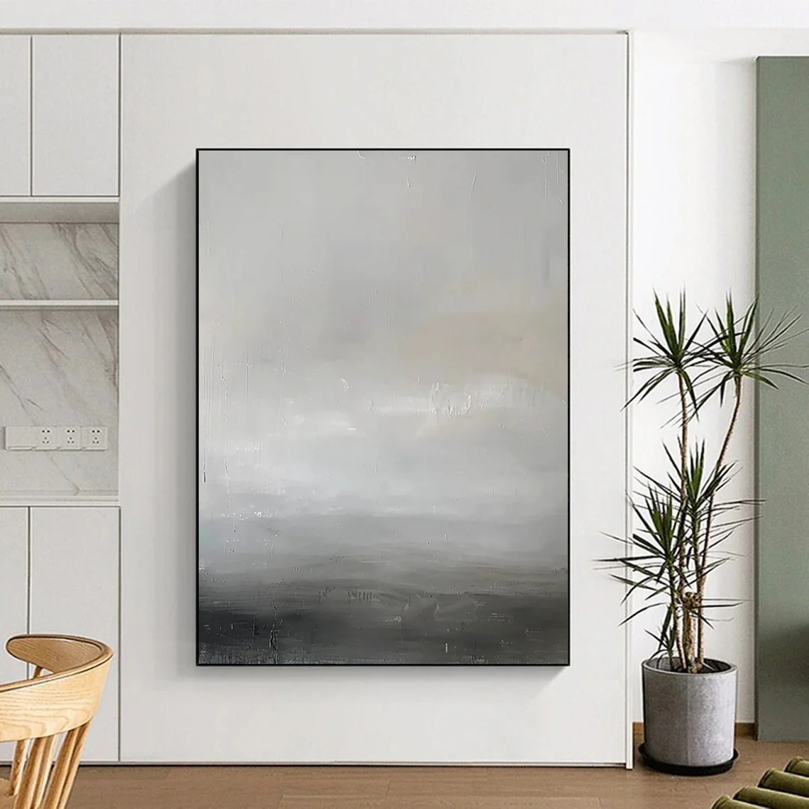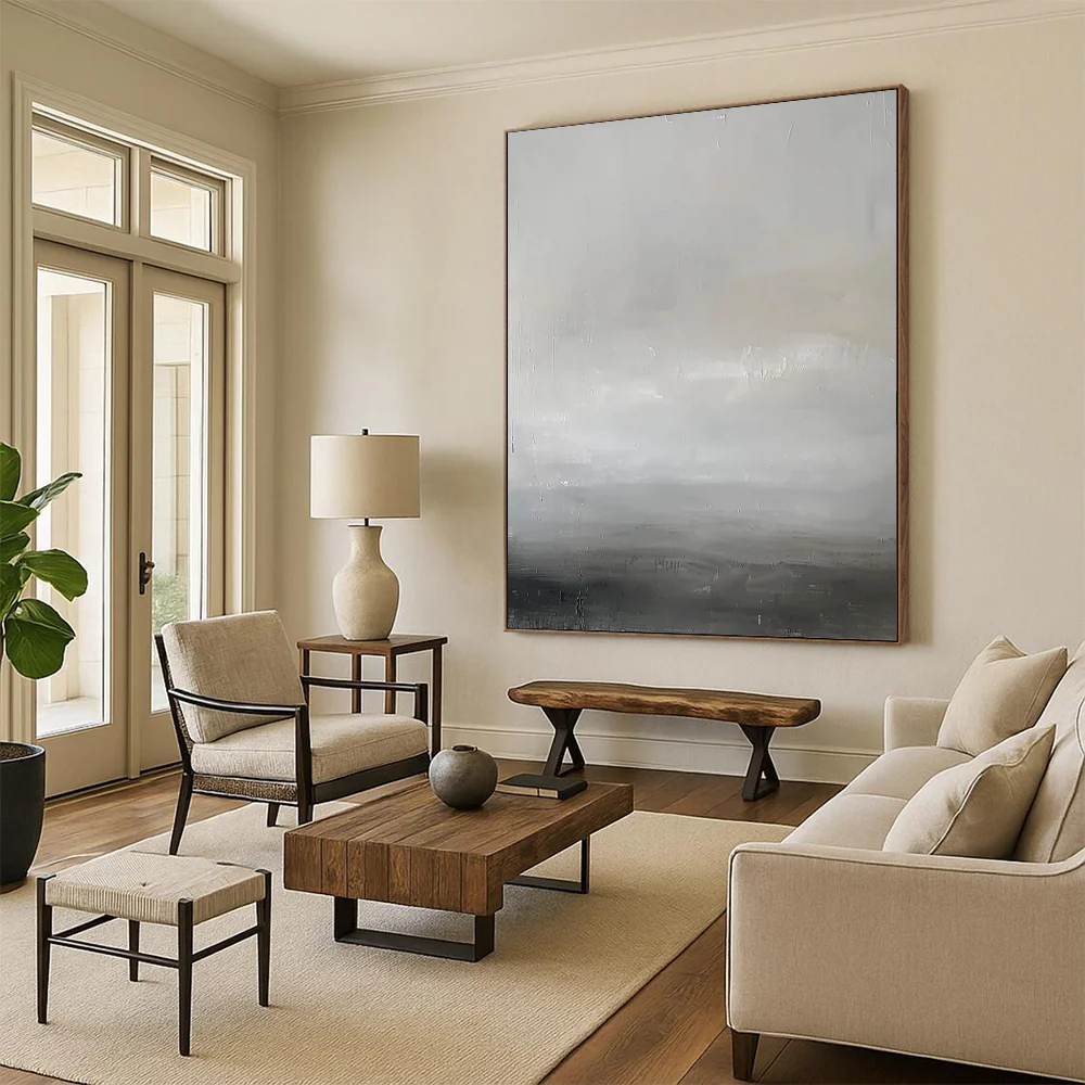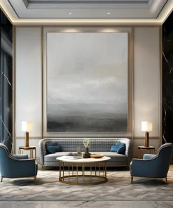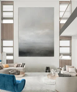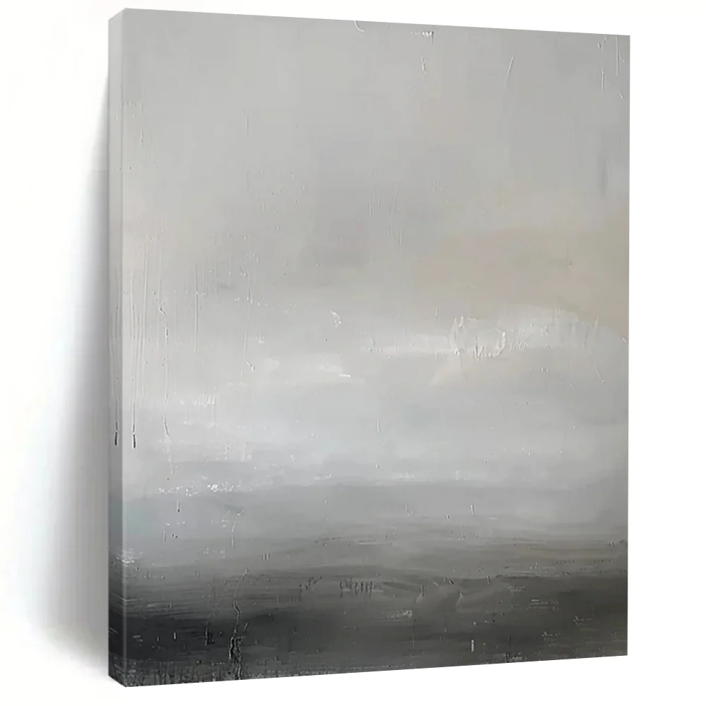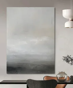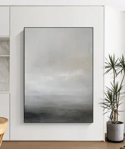 The artist, reflecting on the calm of a foggy morning at sea, used soft grays and whites to create a minimalist, serene scene. The subtle textures evoke the quiet rhythm of waves, in the style of Agnes Martin. Perfect for minimalist bedrooms or meditation spaces, it brings a sense of peace. Embrace the tranquility of this gray horizon – a gentle reminder of life’s quiet moments, ideal for your peaceful retreat.