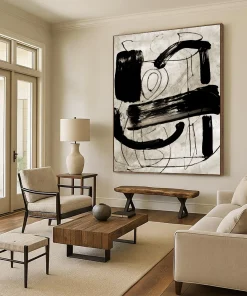The artist was fascinated by traditional ink wash painting but wanted to give it a modern, abstract twist. They used large ink – like brushes and acrylics, making bold, sweeping strokes and delicate lines on a light canvas. The contrast of thick and thin lines mimics the rhythm of calligraphy. Echoing the expressive style of modern ink artists, it’s perfect for a study with Asian – inspired decor, adding an artistic, cultural touch, or a living room to spark conversations about art’s evolution. Own this ink abstraction, and let your space dance with the fluid, dynamic energy of modernized ink art, a blend of tradition and the artist’s creative daring.